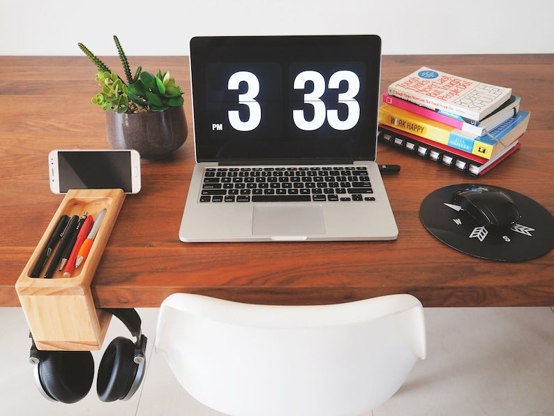 Perfect for gamers, music lovers, and professionals, this wooden headphone stand helps reduce clutter and protects your gear, all while upgrading your desktop aesthetic.